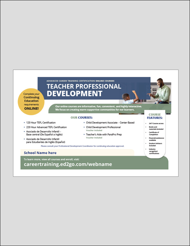 Use this ad to promote the following Teacher Professional Development Continuing Education Online Courses: