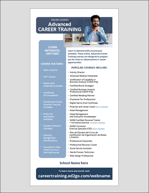 Use this ad to promote the following Advanced Career Training Online Courses: