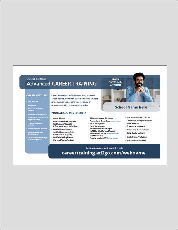 Use this ad to promote the following Advanced Career Training Online Courses:
