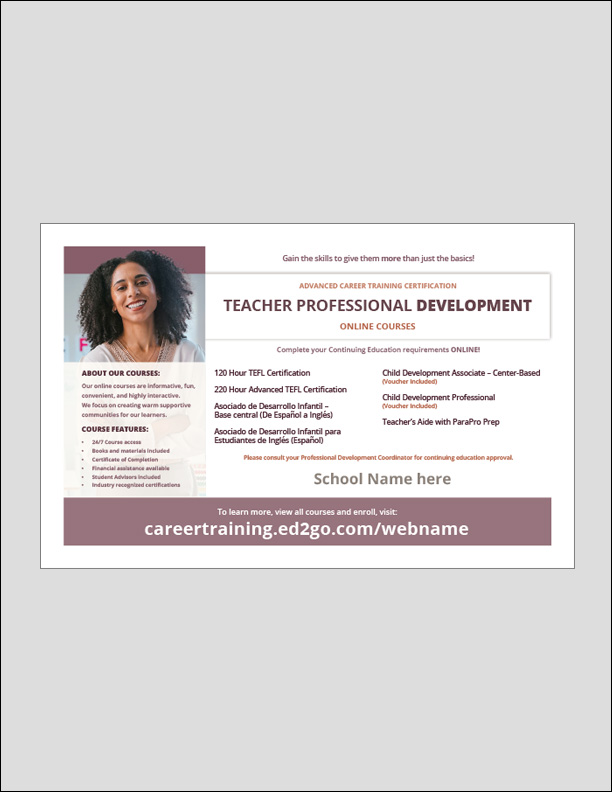 Use this ad to promote the following Teacher Professional Development Continuing Education Online Courses: