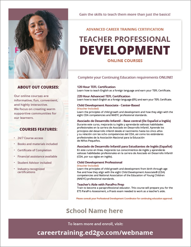 Use this flyer to promote the following Teacher Professional Development Continuing Education Online Courses:
