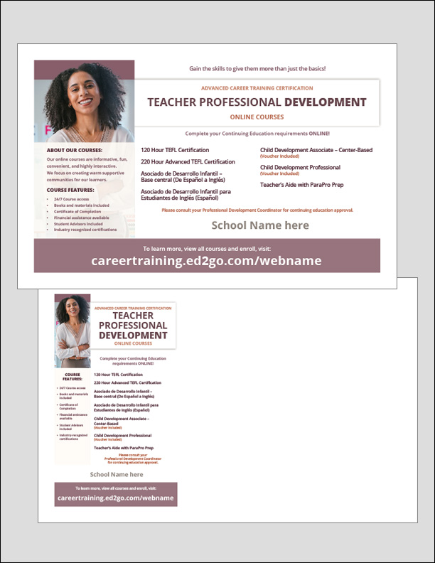 Use this mailer to promote the following Teacher Professional Development Continuing Education Online Courses: