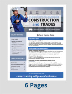 Use this catalog, with course descriptions, to promote Construction and Trades Advanced Career Training online courses.