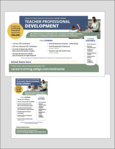 Use this flyer, print ad, and mailer to promote Teacher Professional Development Continuing Education Online Courses.