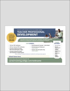 Use this mailer to promote Teacher Professional Development Continuing Education Online Courses.