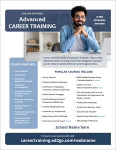 Use this flyer to promote Advanced Career Training course features, and popular courses.