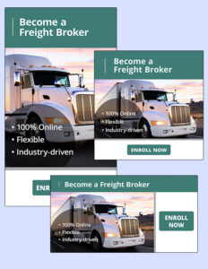 Use these ads to promote the Freight Broker Agent course.