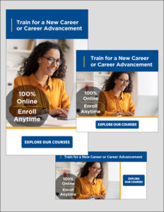 Use these ads to promote the features of New Career Training or Career Advancement online courses.